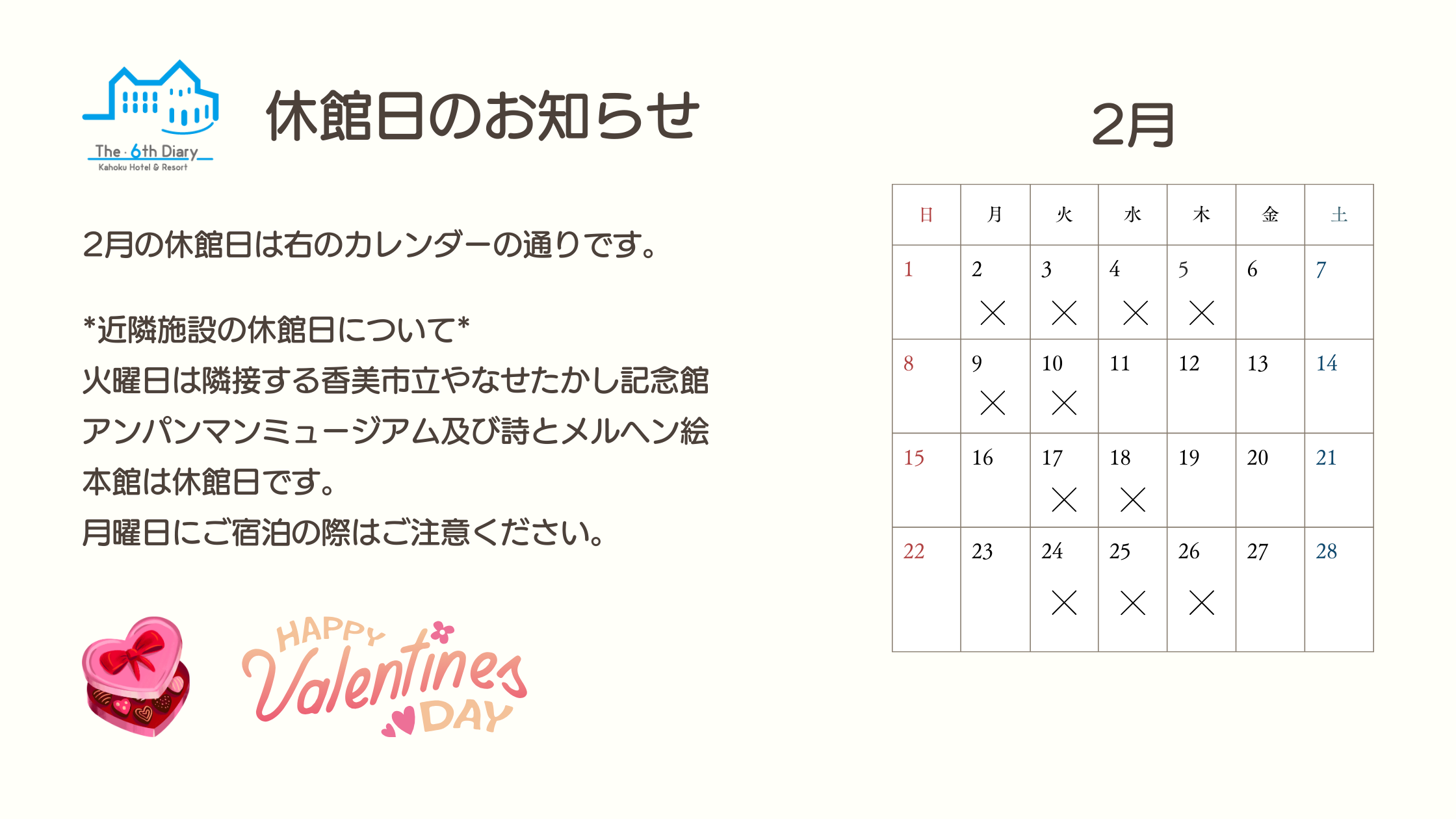 ホーム > お知らせ・イベント一覧 > 【お知らせ】2026年1月〜2月の休館日について